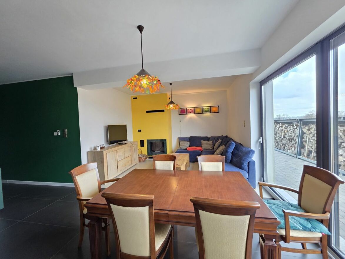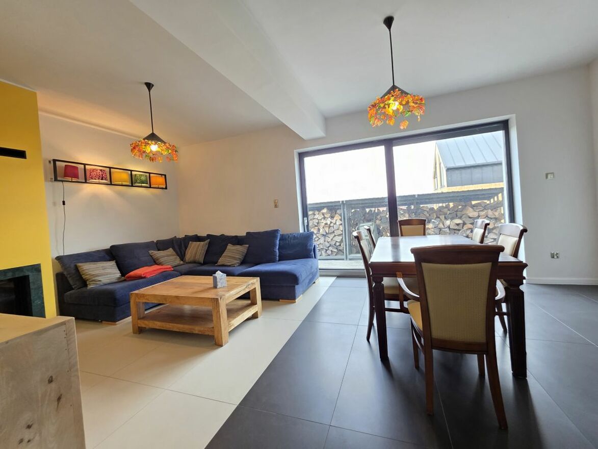 Salon z dużymi przeszkleniami i kominkiem - naturalne światło przez cały dzień